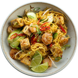 Stir and toss together until the noodles are hot and everything is coated in the sticky sauce. Fold through the beansprouts, sprinkle with sliced red chilli. Serve straight away with lime wedges to squeeze over.